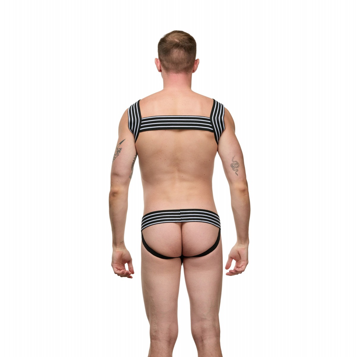 Мужской костюм «Гладиатор». Состоит и 2 предметов в полоску: портупеи и трусиков-джоки. В комплекте: портупея, трусики-джоки.