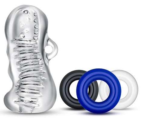 Прозрачный мастурбатор - манящая и тугая игрушка, обещающая чувственные ласки и мега-оргазмы. Открытый с одной стороны тоннель покрыт нежными рёбрышками по всей длине. Удобный захват. Благодаря небольшим размерам удобно хранить и брать с собой в поездки. В комплекте 3 эрекционных кольца. Диаметр колец - 3,6 см.