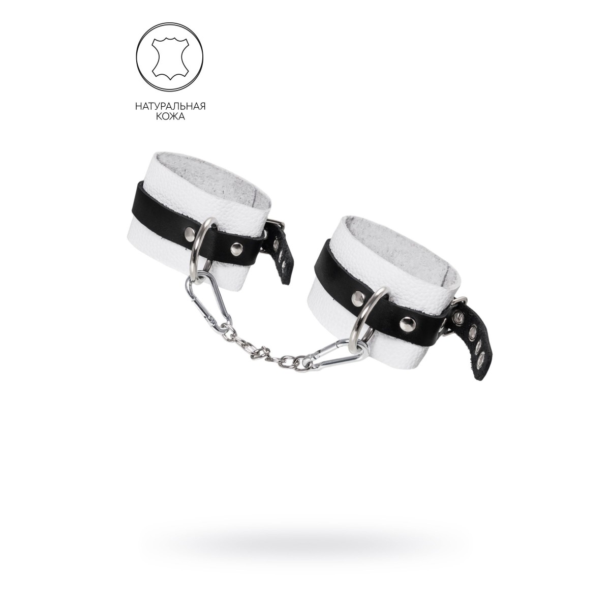 Мягкие оковы с жёсткими ремешками от Pecado помогут обездвижить партнера во время сексуальных прелюдий или жестких БДСМ-играх. Наручники изготовлены полностью из белой, натуральной кожи. Ремешки выполнены из чёрной жёсткой кожи, украшены люверсами. Выделка материала произведена вручную. Ремешки и широкая манжета хорошо держат форму: не тянутся и не мнутся. Качественная металлическая фурнитура добавляет лоска изделию, а аромат натуральной кожи повышает градус возбуждения. Благодаря широкому запасу регулировок, можно подобрать необходимый обхват. Аксессуар удобно застегивать и легко расстегивать. При правильном использовании не оставляет следов на теле и не доставляет дискомфорта. Манжеты оков соединяется между собой помощью двух карабинов и съемной стальной цепочки. Подходит и для женских, и для мужских ног. Длина манжет - 25 см, ширина - 5,5 см. Длина сцепки - 24 см/