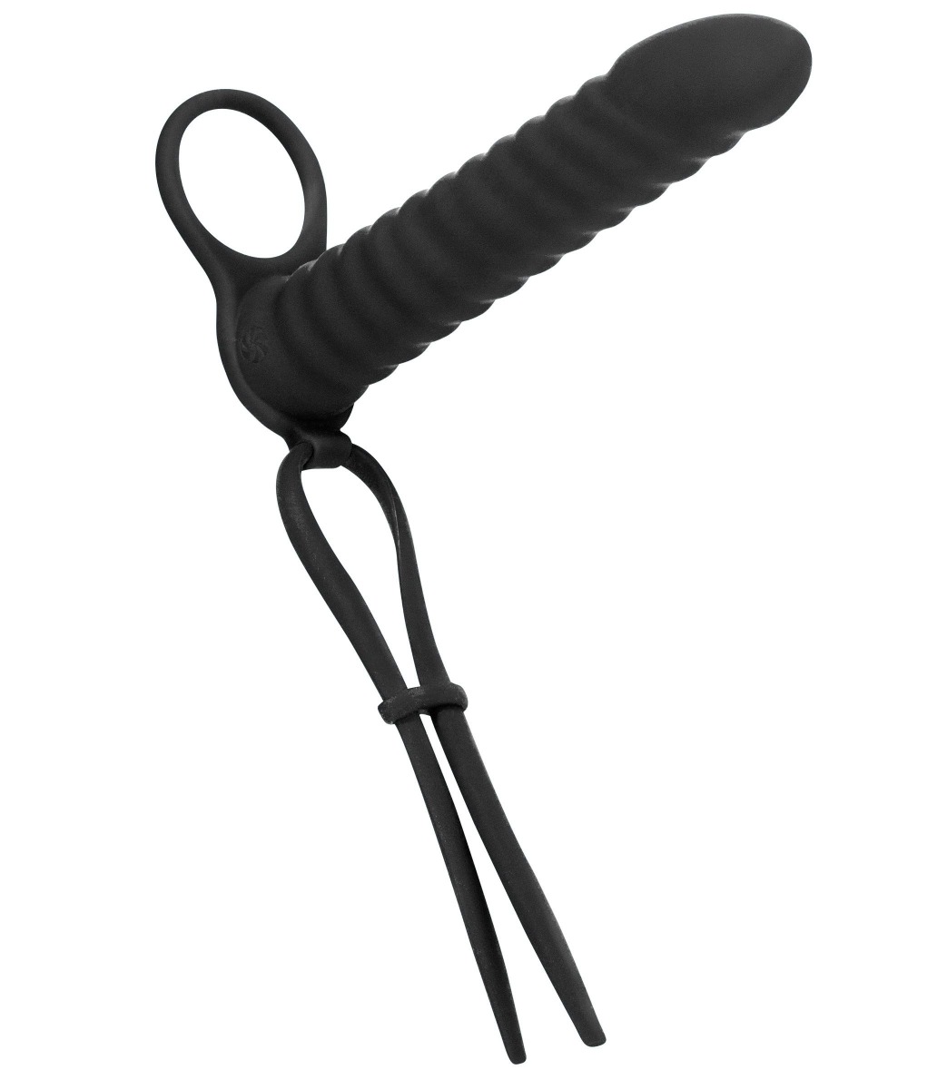 Насадка для двойного проникновения Rori из гипоаллергенного силикона. Обладает рельефной и гибкой формой. Надежно крепится у основания члена благодаря силиконовому кольцу. Оно хорошо тянется и подходит на любой размер. Снизу насадка имеет лассо для дополнительной фиксации за мошонкой. Дополнительная стимуляция осуществляется благодаря вибропуле с 10 скоростями. Она легко извлекается из силиконовой насадки и может использоваться отдельно. Внутренний диаметр кольца – 3см.
