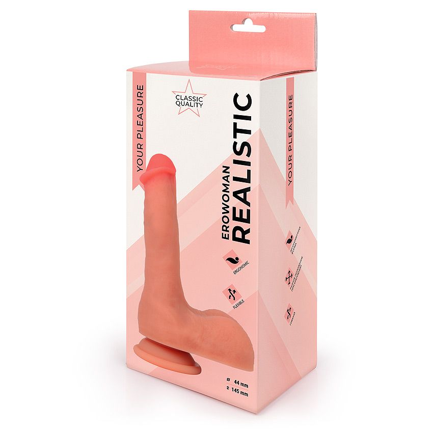 Фаллоимитатор на присоске для любителей реалистичных секс-игрушек! Интимный аксессуар отличается ярко выраженной головкой, внушительной мошонкой и роскошными размерами пениса. Натуральный оттенок, складочки и «пульсирующие» венки придают изделию больше естественности. Присоска позволяет прочно крепить фаллоимитатор на ровной поверхности в горизонтальном или вертикальном положении. Секс-игрушка изготовлена из мягкого материала, дарящего приятные тактильные ощущения. Рабочая длина - 14,5 см.