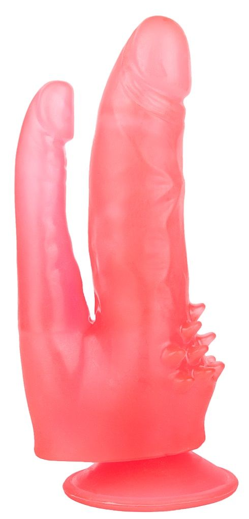 Мечтаете внести в интимную жизнь разнообразие и умножить удовольствие от секса? Этот симпатичный розовый двойной фаллоимитатор из приятного на ощупь материала с легкостью справится с такой задачей. Реалистичный и очень чувственный - один дилдо плавно входит в женское лоно, а второй аккуратно стимулирует анальное отверстие. В основании секс-игрушки есть присоска для фиксации на ровной поверхности. Диаметр анального отростка – 2,1 см.