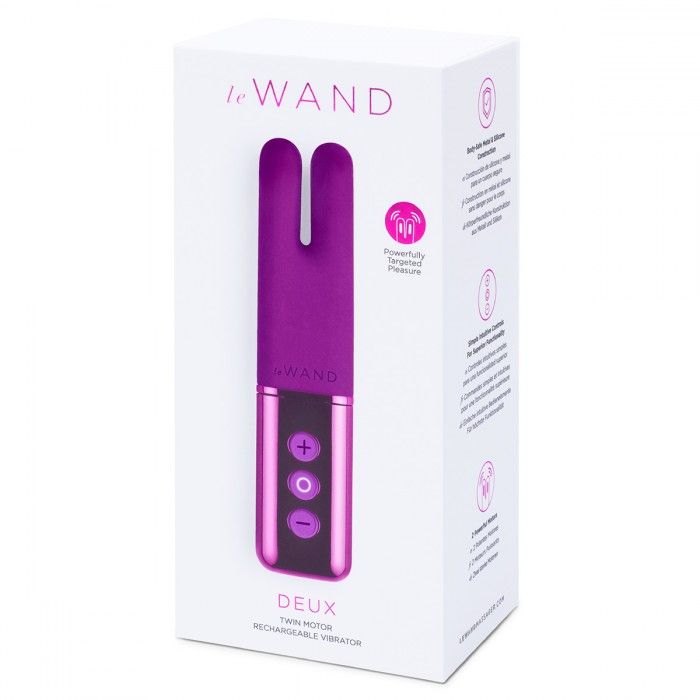 Le Wand Deux - это двухмоторный перезаряжаемый мини-вибратор для женщин, которым нравится качественная стимуляция клитора. Чудесный бархатный силикон и 2 ушка вибратора вместе с 15 режимами вибрации и 6 уровнями интенсивности, могут быстро и качественно довести вас до мощного оргазма. Необычная форма позволяет использовать его для клитора, сосков или какой-либо другой эрогенной зоны. Le Wand Deux можно погрузить в воду на 30 минут, а простое управление из 3 кнопок позволяет быстро маневрировать и менять интенсивность и режимы. Благодаря своей удобной и компактной форме легко помещается в сумочку и ладонь. Металлическая основа Deux отсоединяется и заряжается с помощью USB-порта. Тихий мотор и блокировка игрушки в путешествии. Время работы - 1 час.