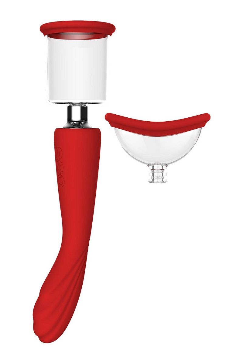 Красный двойной стимулятор Georgia - вибратор и вакуумная помпа. Вибросторона со стимулирующими выступами имеет 7 ритмов вибрации и может использоваться для точки G. Вакуумная сторона (2 сменные насадки разной формы) идеальна для вакуумного массажа клитора, половых губ, сосков. Водонепроницаемость IPX7.