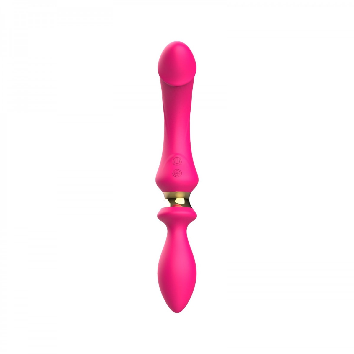 Розовый двусторонний вибромассажёр. Может использоваться обоими партнёрами - для вагинальной или анальной стимуляции. Имеет 10 режимов вибрации. Рабочая длина большого отростка - 12,8 см, диаметр - 3,8 см. Рабочая длина малого отростка - 9,1 см, диаметр - 3,7 см.